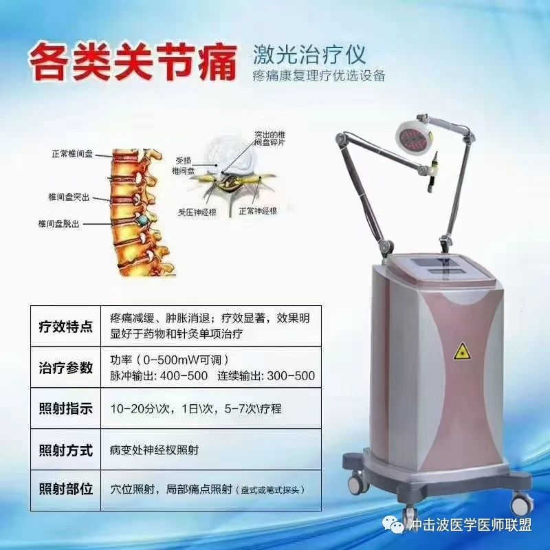 半導體激光治療儀激光直接照射血流減少的疼痛部位或間接照射支配此范圍的交感神經節均可引起血流增加,促進致痛物質代謝,緩解疼痛;